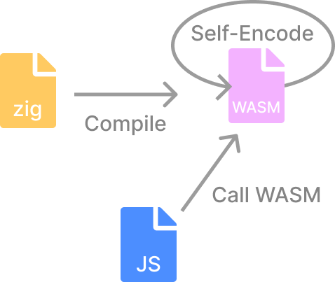 コード内にWASMバイナリを含める方法はいくつかありますが、バイナリをエンコードして、JS側でデコードして使うという流れは、今回のユースケースにぴったりなはずです。